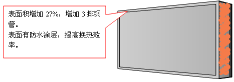 5.增大了蒸發(fā)器面積,使焓差值提高到0.95,提高了熱交換效率。蒸發(fā)器的表面經(jīng)過特殊的防水涂層處理,減少了冷凝水在其表面的停留時間,提高換熱效率。