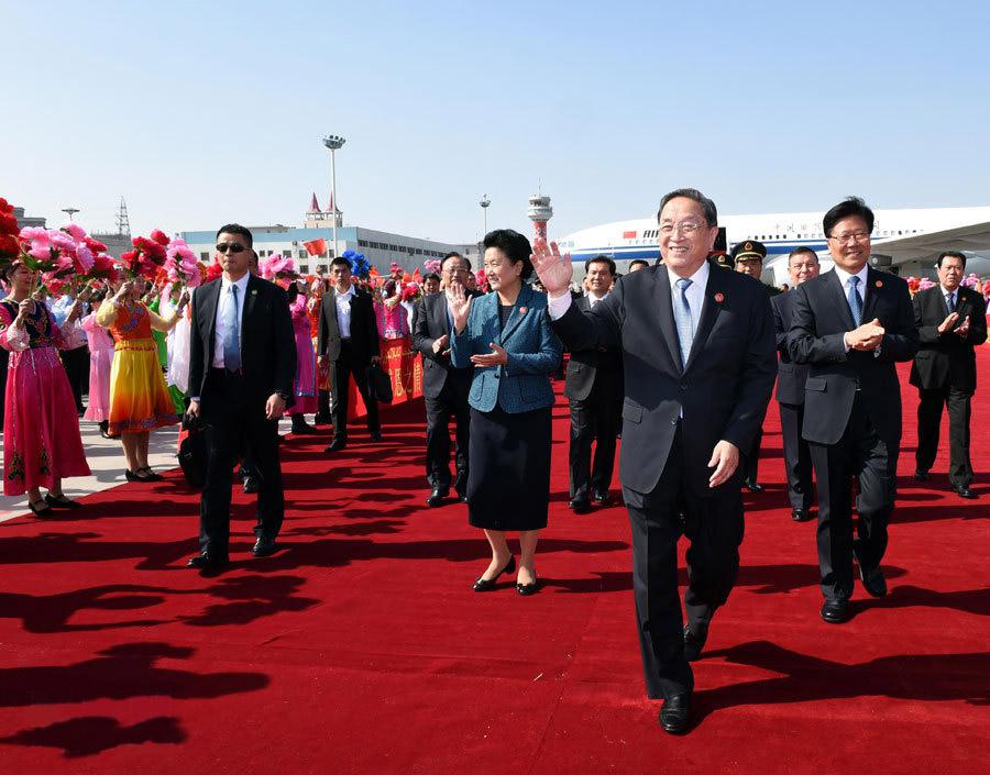 9月25日,帶著黨中央和習近平總書記的親切關懷,滿載全國各族人民的深情厚誼,以中共中央政治局常委、全國政協主席俞正聲為團長的中央代表團飛抵烏魯木齊,出席自治區成立60周年慶祝活動。由解放軍軍團、兒童、各族干部及各界群眾組成的1000多人歡迎隊伍,揮舞著五星紅旗和花束彩帶,打起手鼓、跳起歡快的迎賓舞,迎接中央代表團的到來。