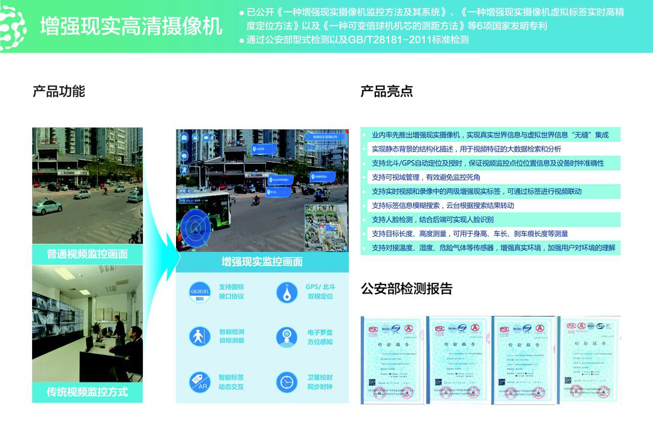 “增強現實”在攝像機領域是一個全新的概念,普通攝像機反映的是“現實”,這種現實由于缺少附加性的信息,給監控畫面的安保人員帶來了極大的困惑。為了解決這些問題,需要在“現實”的基礎上進行“增強”,給實時監控畫面添加名稱、經緯度、方位角、距離、位置、歷史案例描述、聯系方式等等信息,這些輔助能屏幕前的安保人員及時有效地處理視頻畫面捕捉到的異常、突發情況。