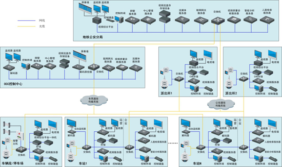 地鐵運營視頻監控系統主要由車站、車輛段/停車場監控和OCC運營控制中心組成。